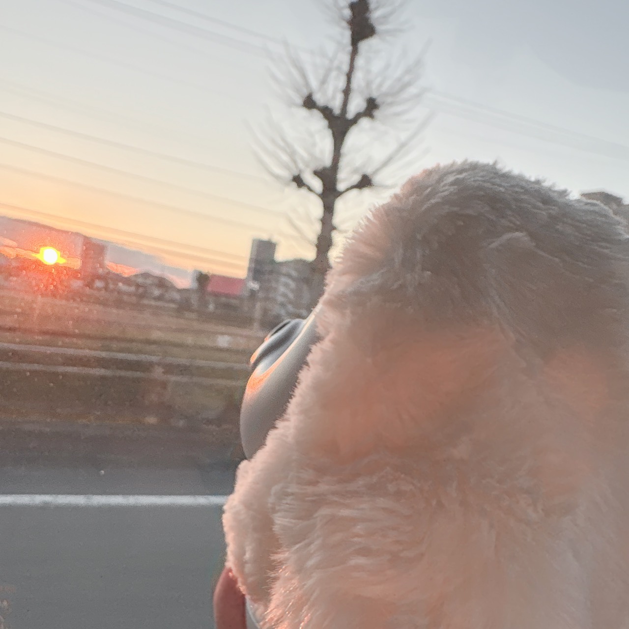 車の中から、こもちゃんと並んで眺める朝焼けは、なんだか特別で。